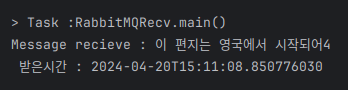 RabbitMQRecv쪽 콘솔이다.