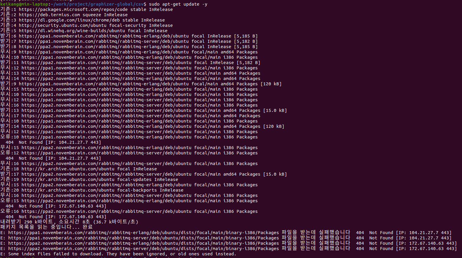 amd64 repository에서 잘 받는다, 위의 i386에러는 해결된 거 같다. 아랫줄 rabbitmq-server도 이상없다.