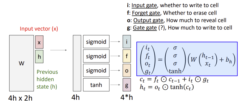 cell state : vector that carries information through the network. LSTM이 정보를 오랫동안 보존할 수 있게 도와준다.