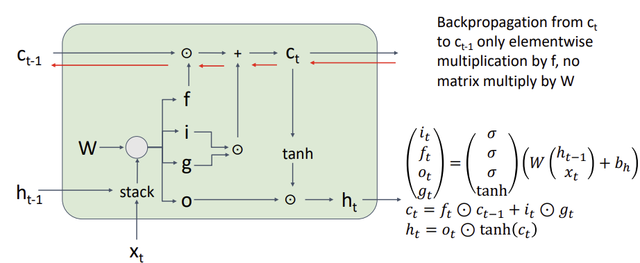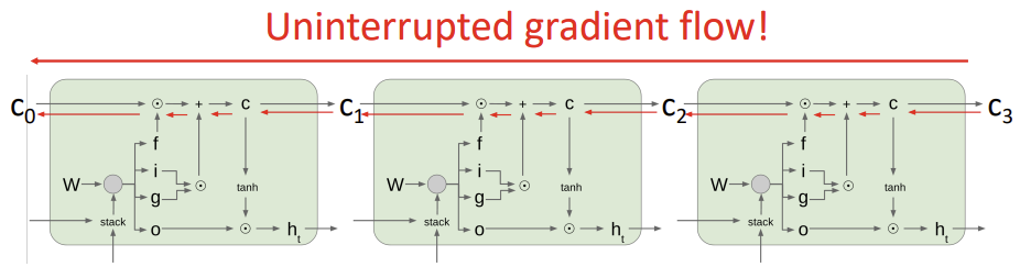 LSTM에서는 역전파 과정 동안 정보가 어느 정도 보존되는 경로가 항상 존재한다. -> similar to ResNet