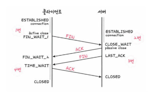 클라이언트는 TIME_WAIT 상태가 되고 다시 서버로 ACK 보내서 서버는 CLOSED 상태.
