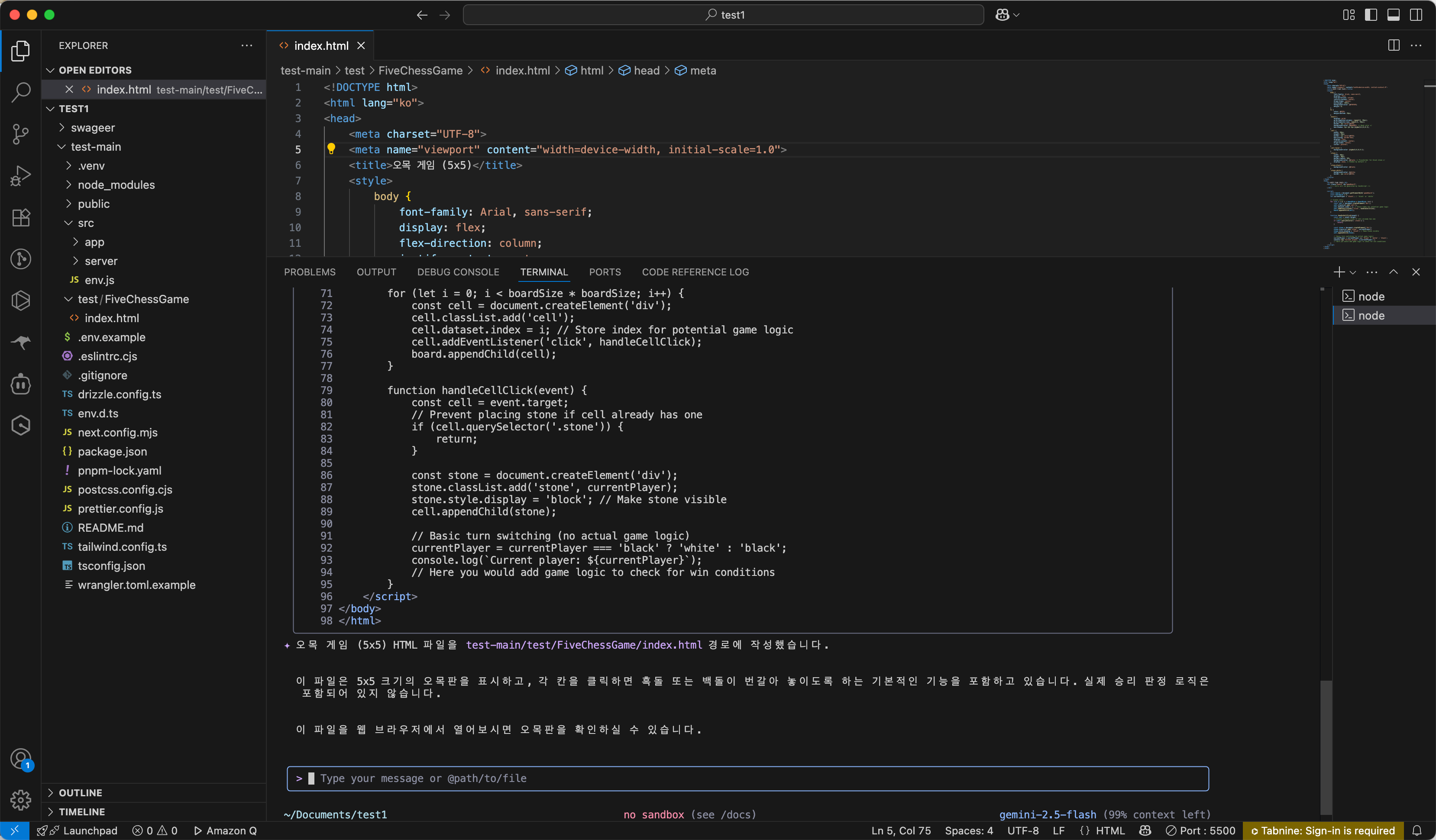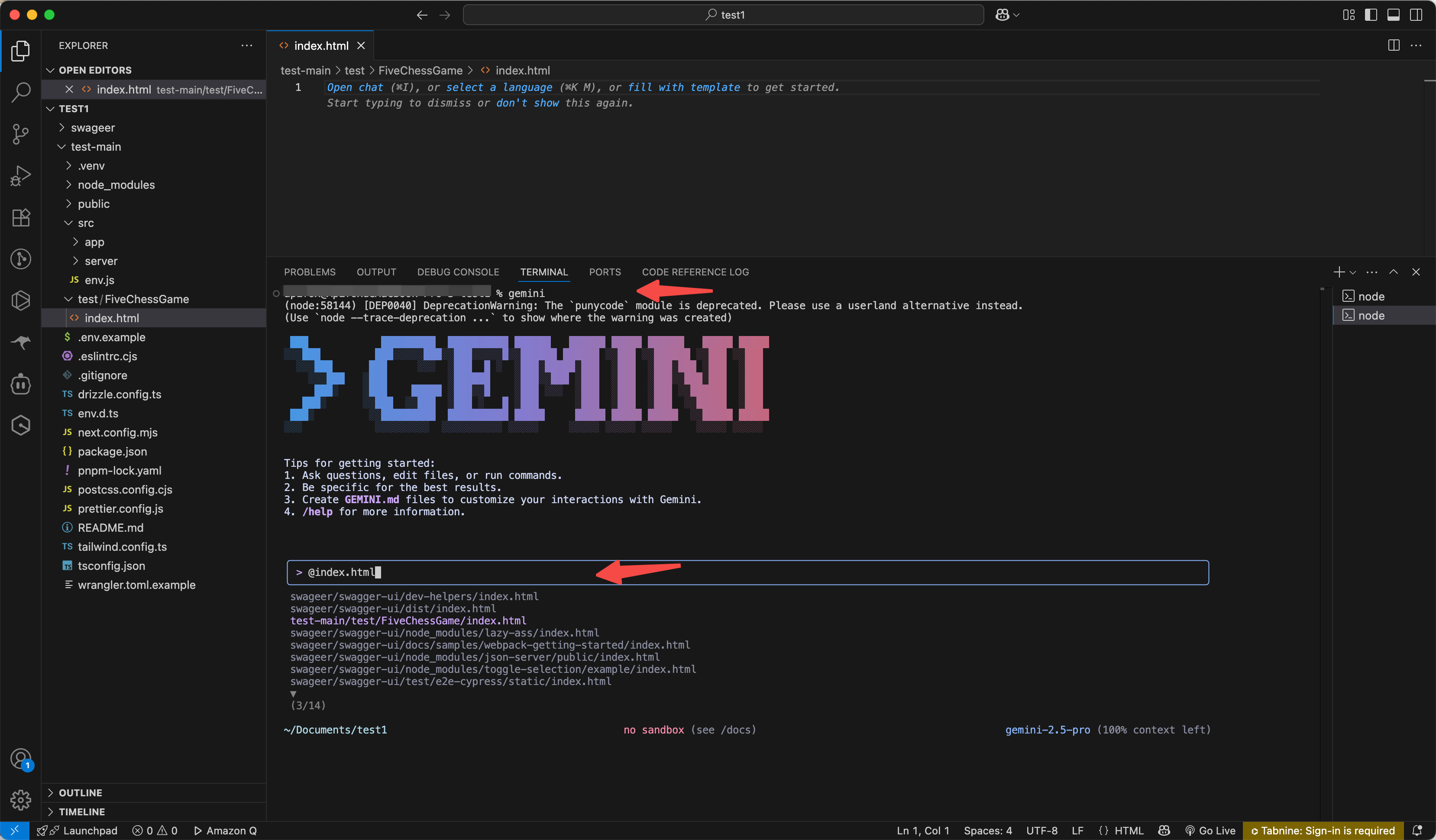 VSCode의 통합 터미널에서 직접 gemini