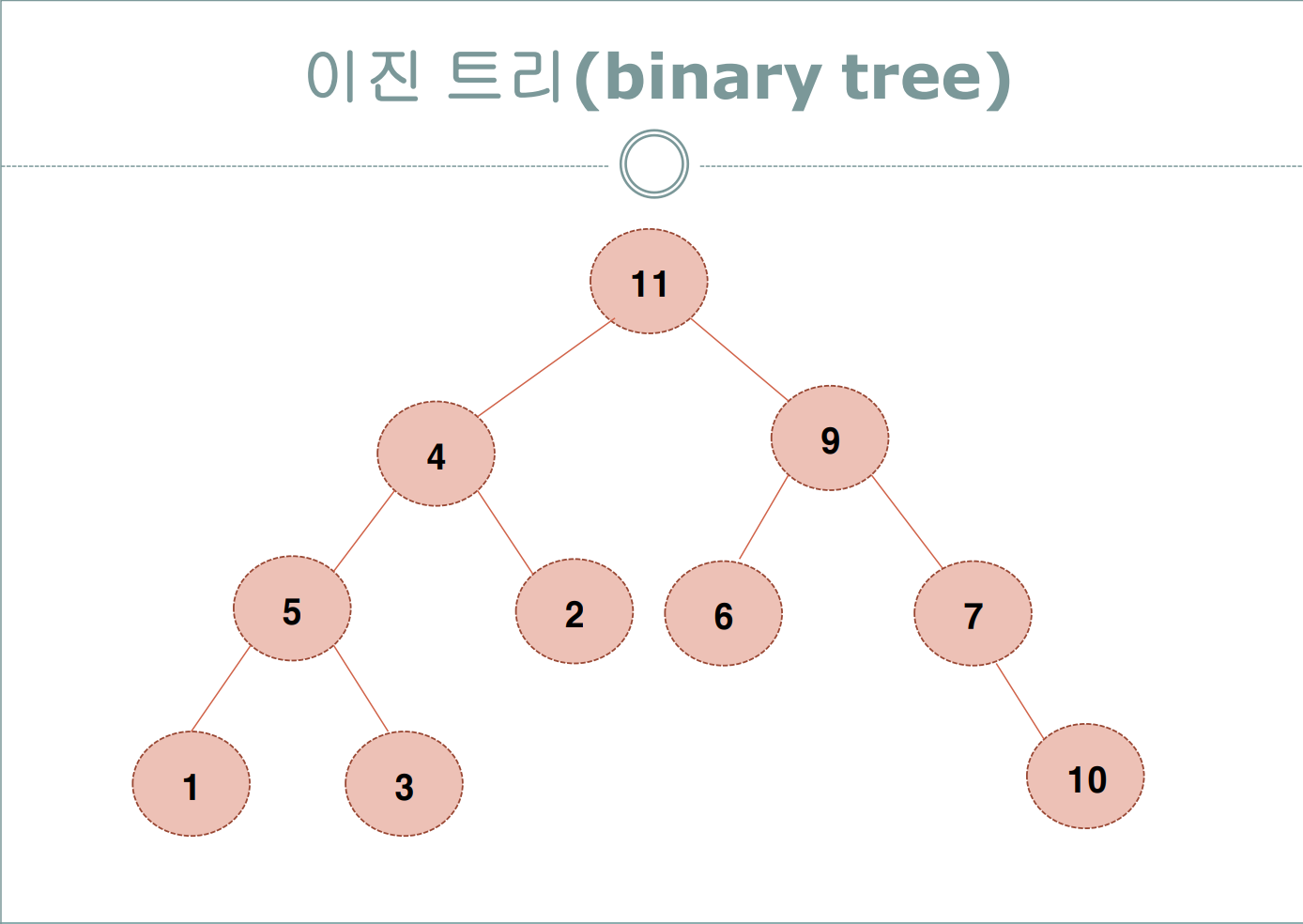 • 노드가 왼쪽 자식과 오른쪽 자식을 갖는 트리