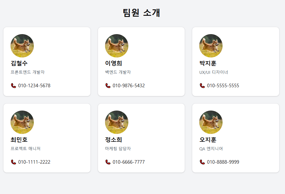 ShadCN UI의 Card 컴포넌트를 활용하여서 다음과 같이 레이아웃을 간단하게 만들 수 있었습니다! 추후 디자인 수정이 필요하면 간단하게 수정할 수 있어서 편집도 용이합니다.