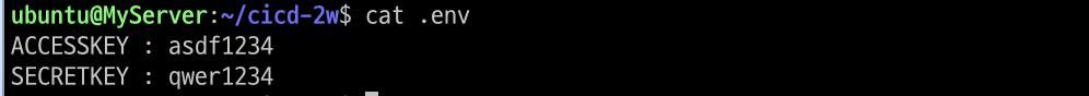- Secret 생성 : MYKEYS ⇒ 아래 SSH for GitHub Actions 에서 env 전달 방식 활용