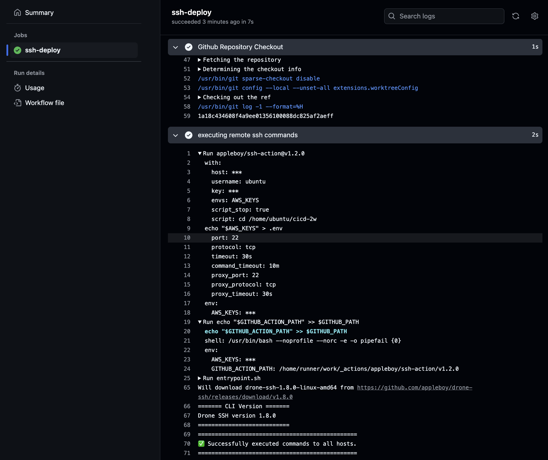대상 서버 ec2에 기존 서비스 중지하고 다시 실행되었다.