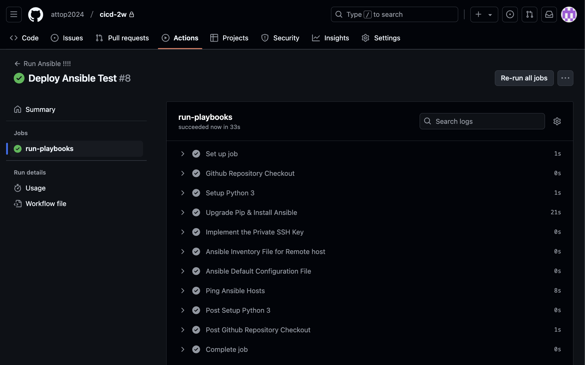 스크립트 기반 서버에 명령어등을 수행하는 것보다는 멱등성등 여러 관리 이점이 있는 Ansible 같은 솔루션을 Github action을 통해서 구현해 볼 수 있습니다. 이번에는 개념만 알아보기 위해서 간단하게 Ansible 을 수행해 봅니다.