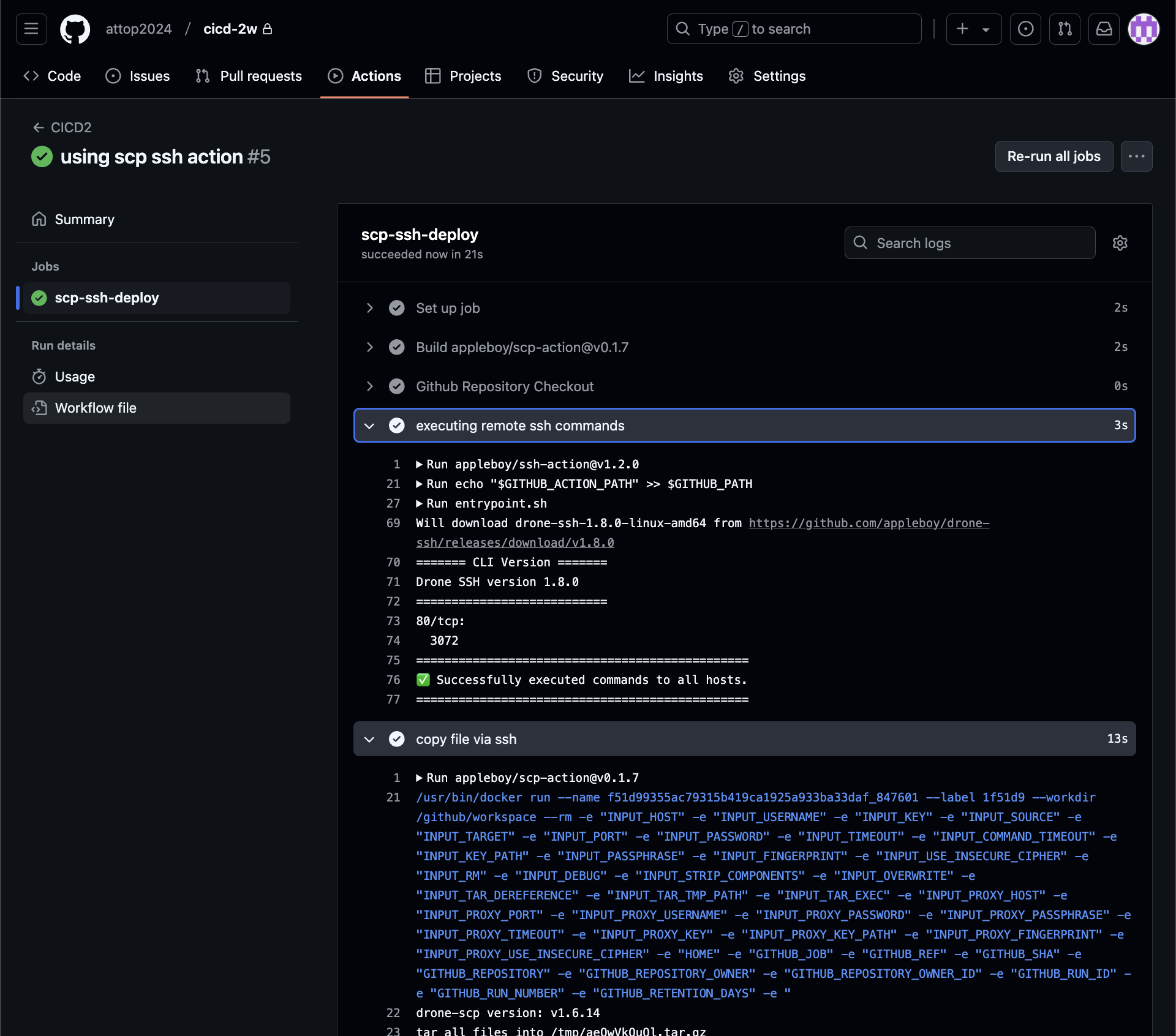 git add . && git commit -m "using scp ssh action" && git push origin main