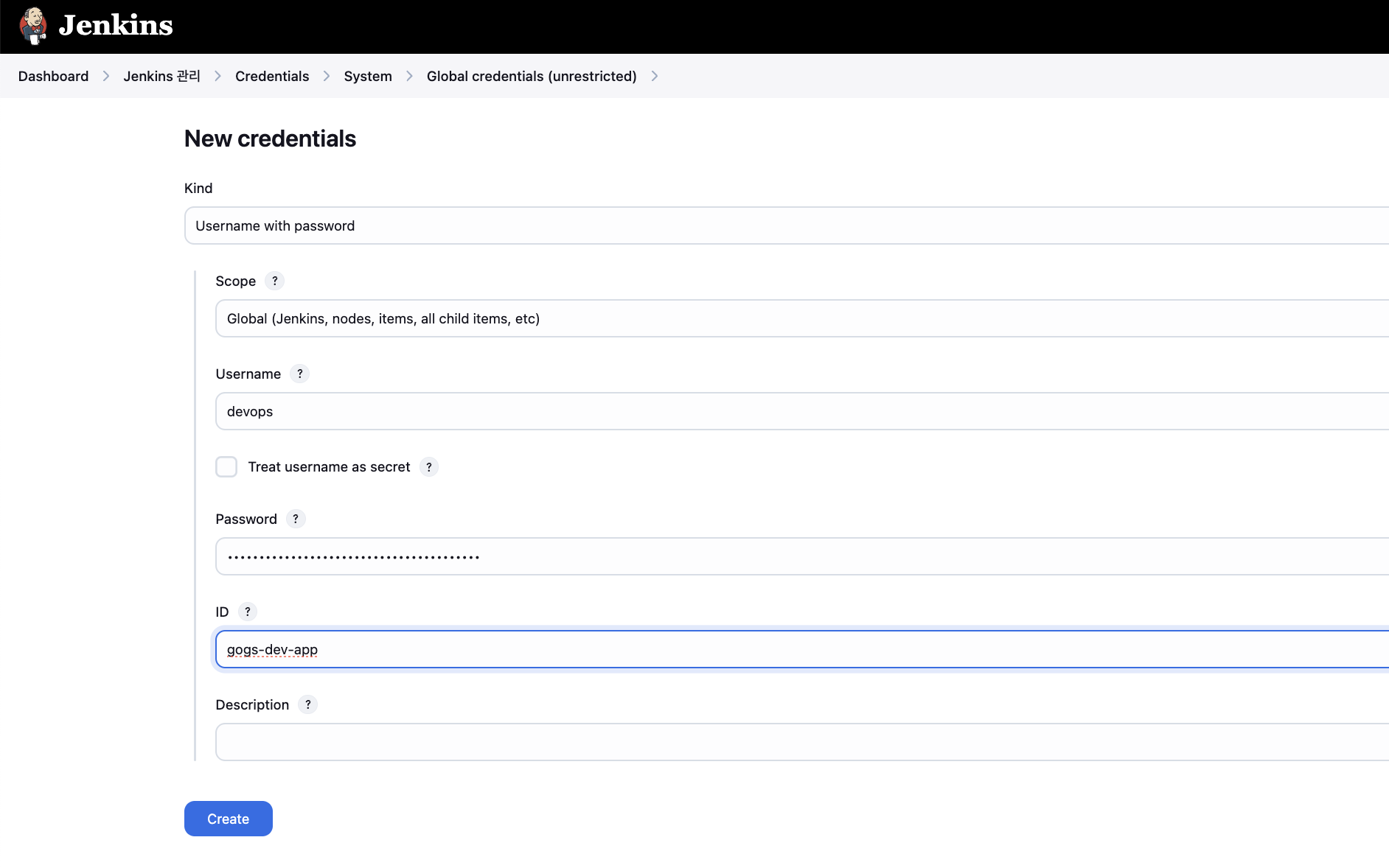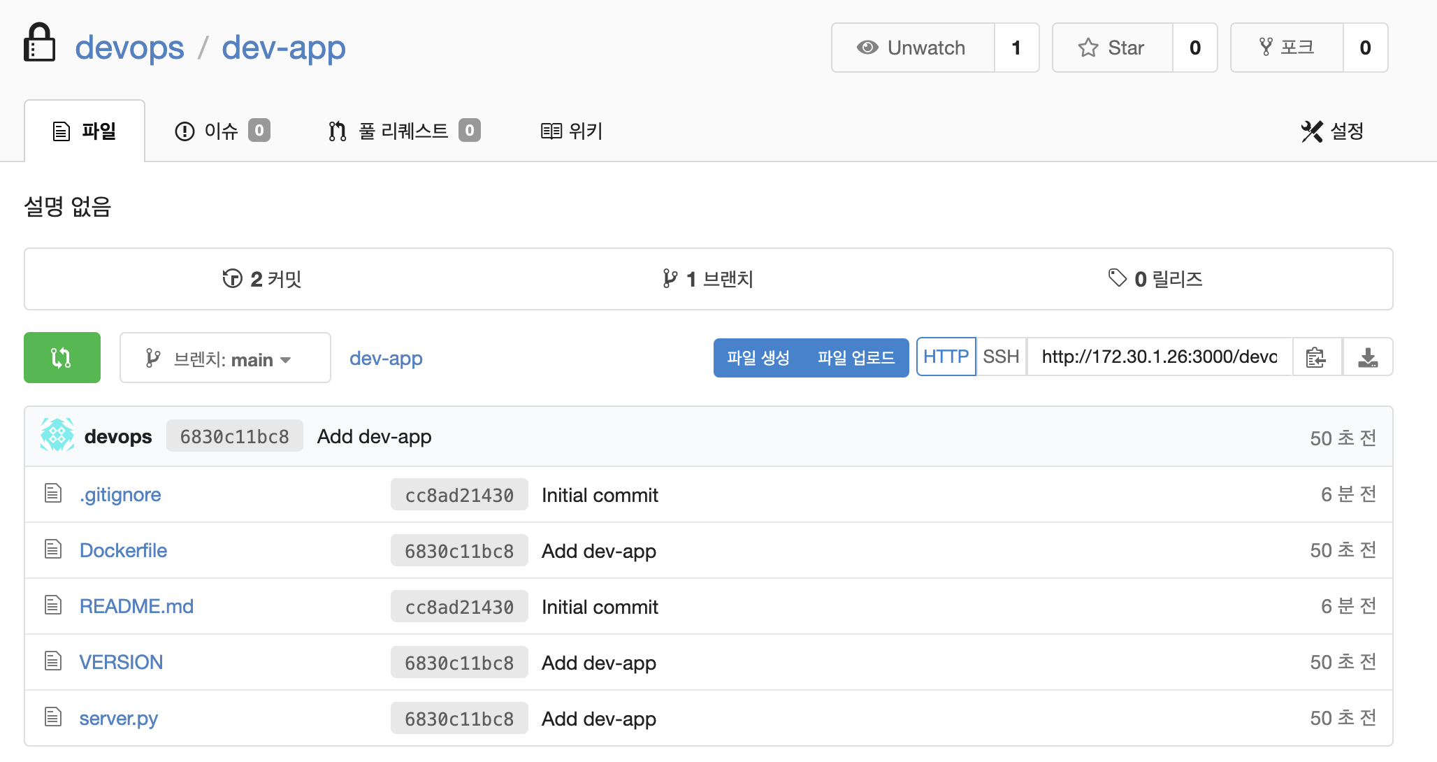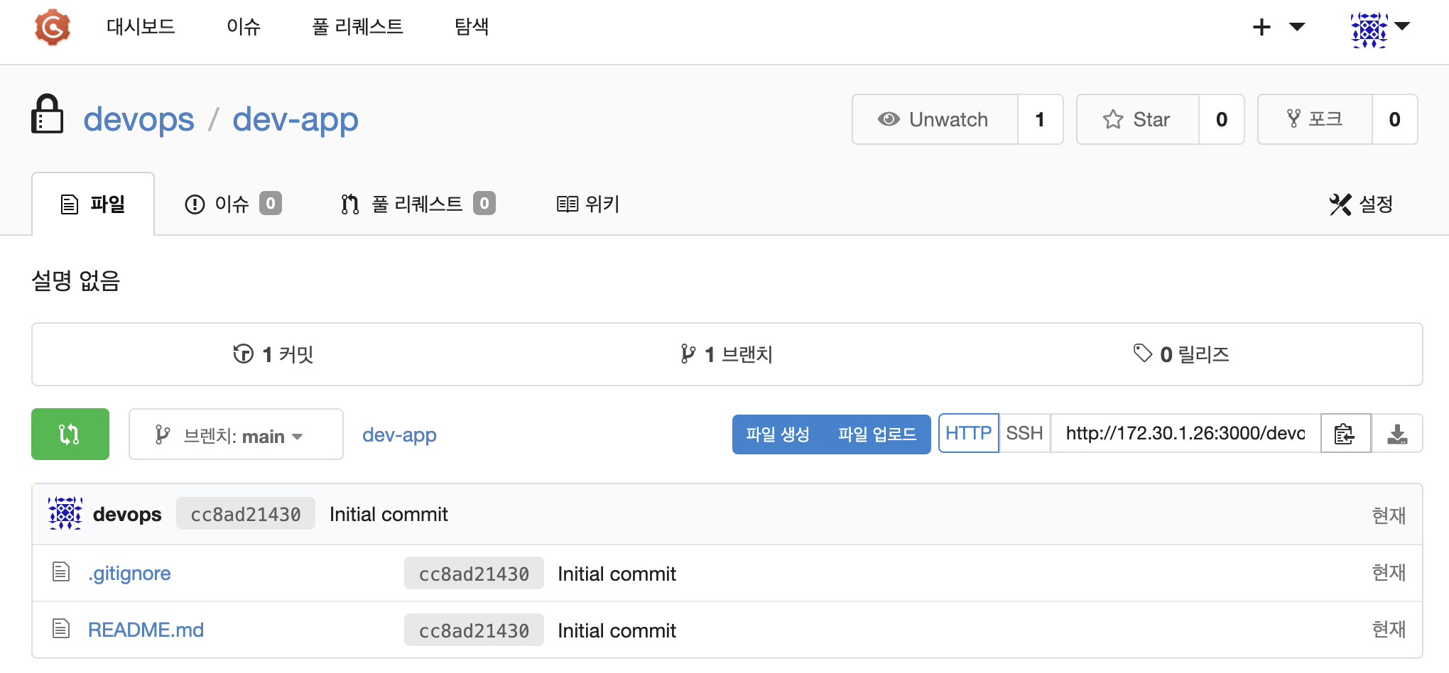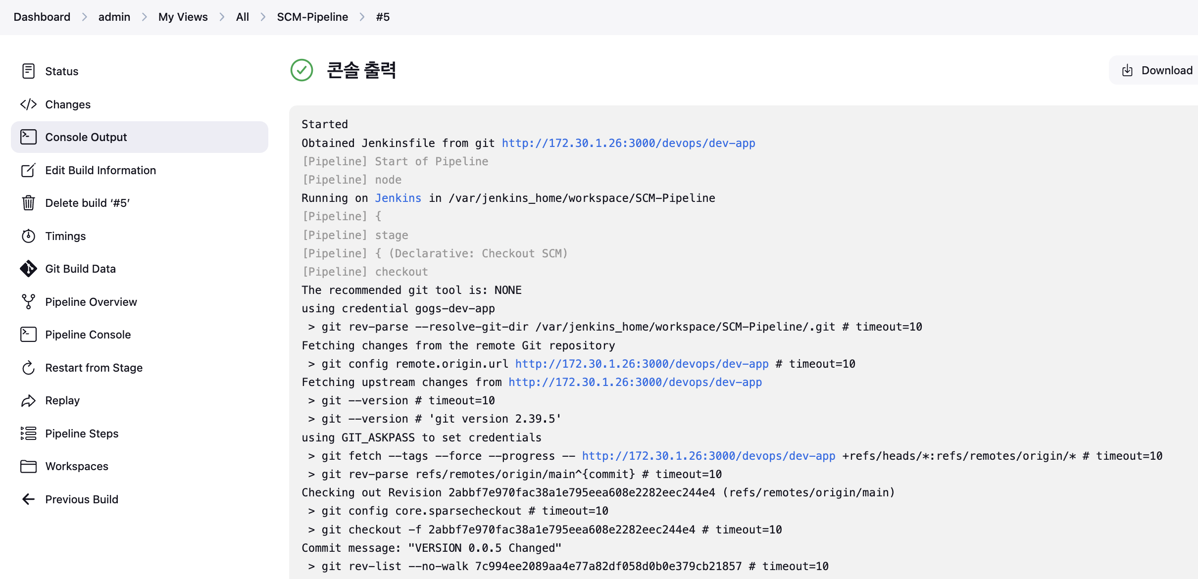 url: 'http://172.30.1.26:3000/devops/dev-app.git', // Git에서 코드 체크아웃