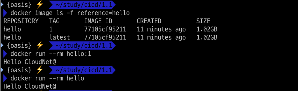 docker run --rm hello:1
