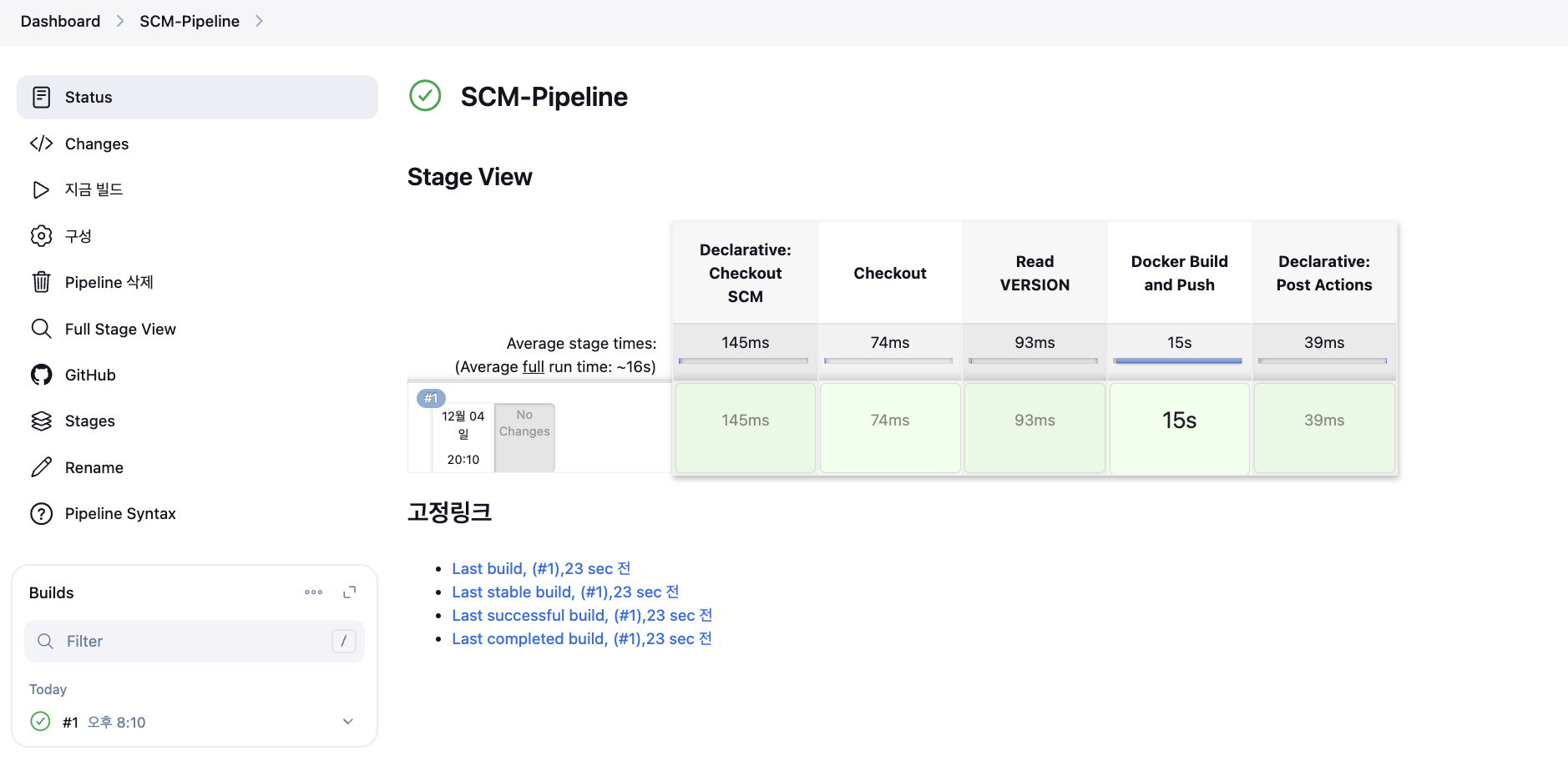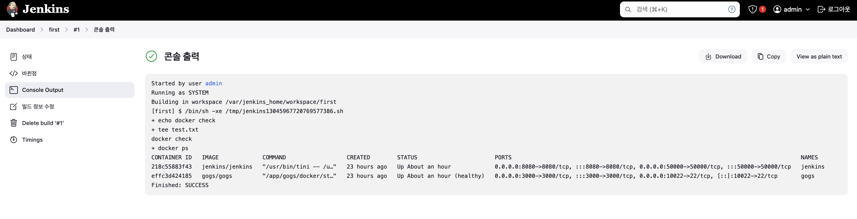 jenkins에서 자동으로 빌드 실행되었고 정상적으로 완료되었다.