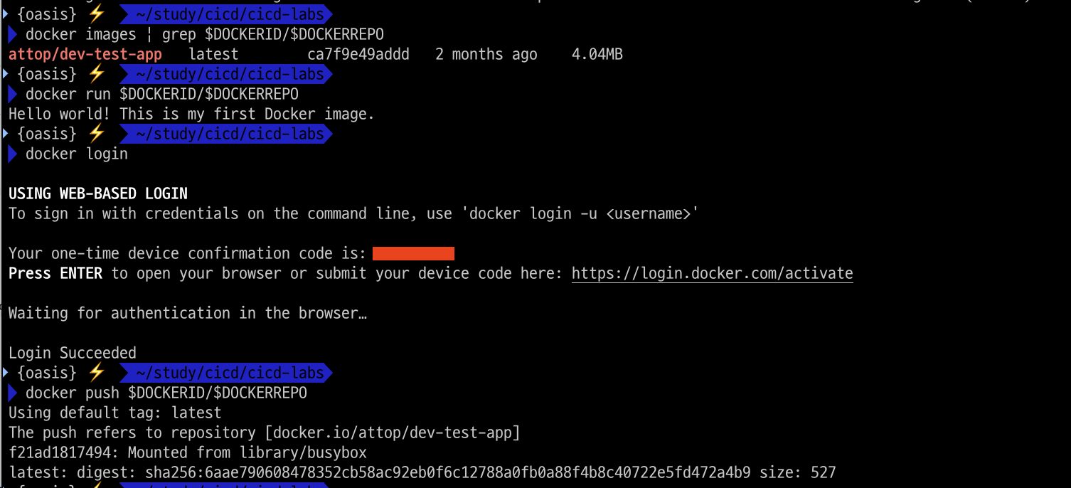 파이프라인에서 지정한 도커허브에 잘 push가 되었습니다.