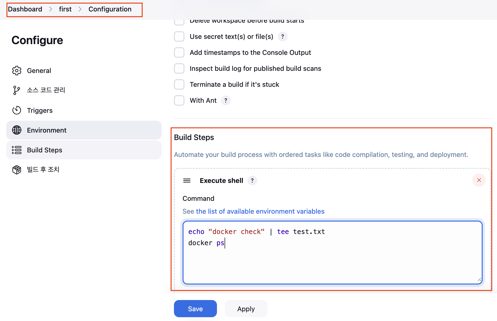 - jenkins에서는 구성되어 있는 Item(프로젝트나 Pipeline 등등)을 빌드를하고