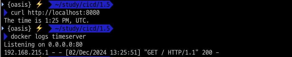 docker run -d -p 8080:80 --name=timeserver timeserver