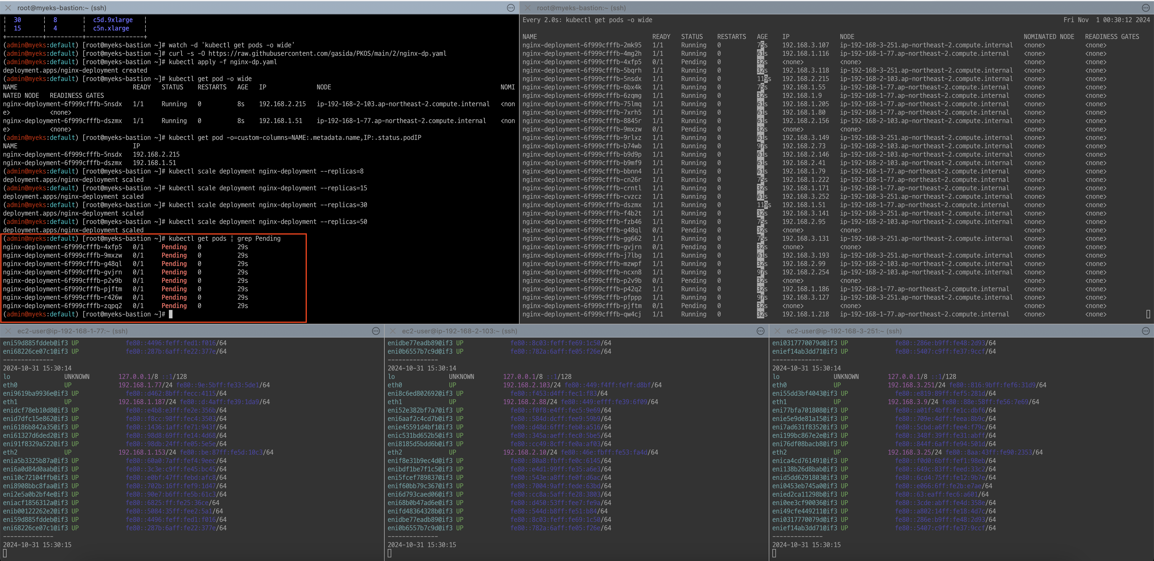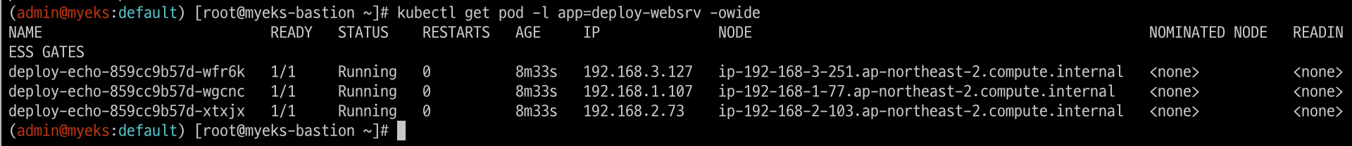 coredns-6777fcd775-cvqsb 1/1 Running 0 70m 192.168.2.75 ip-192-168-2-34.ap-northeast-2.compute.internal <none> <none>