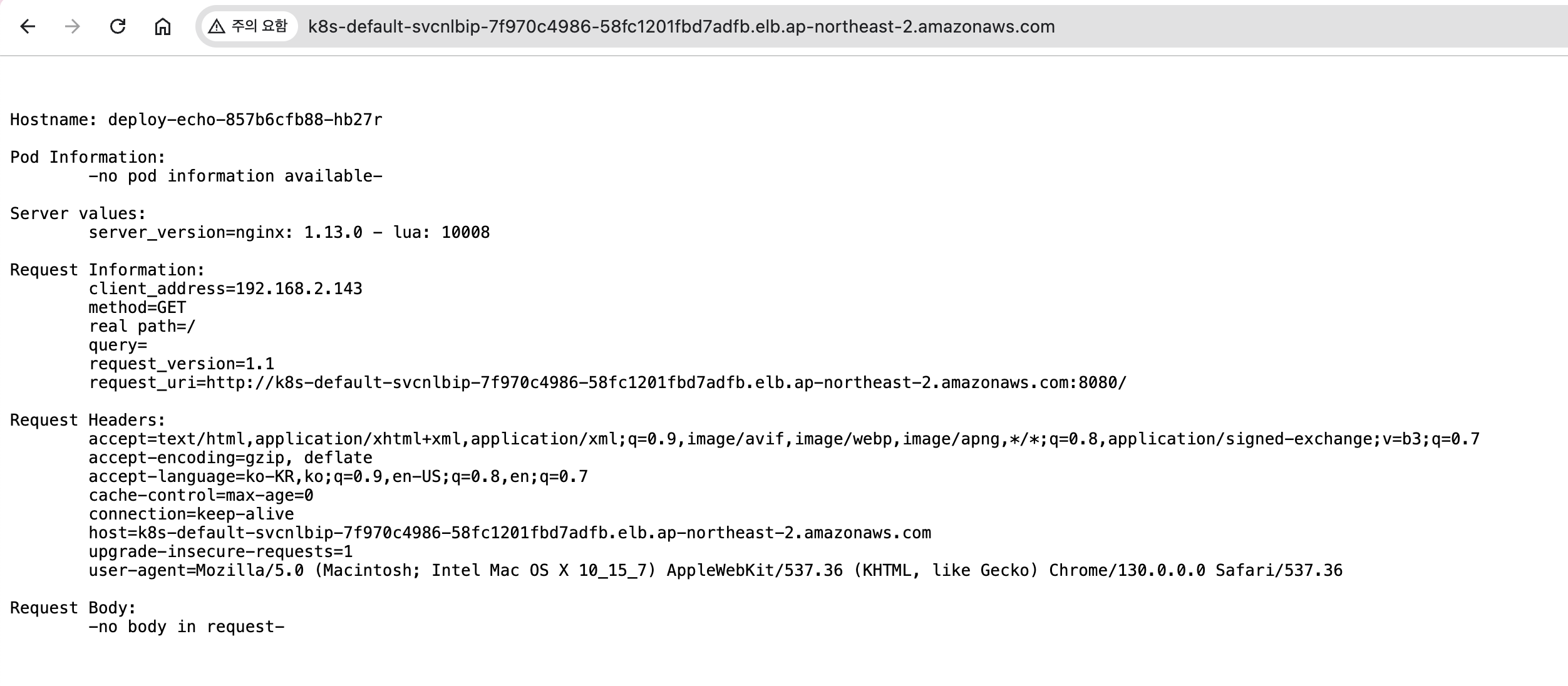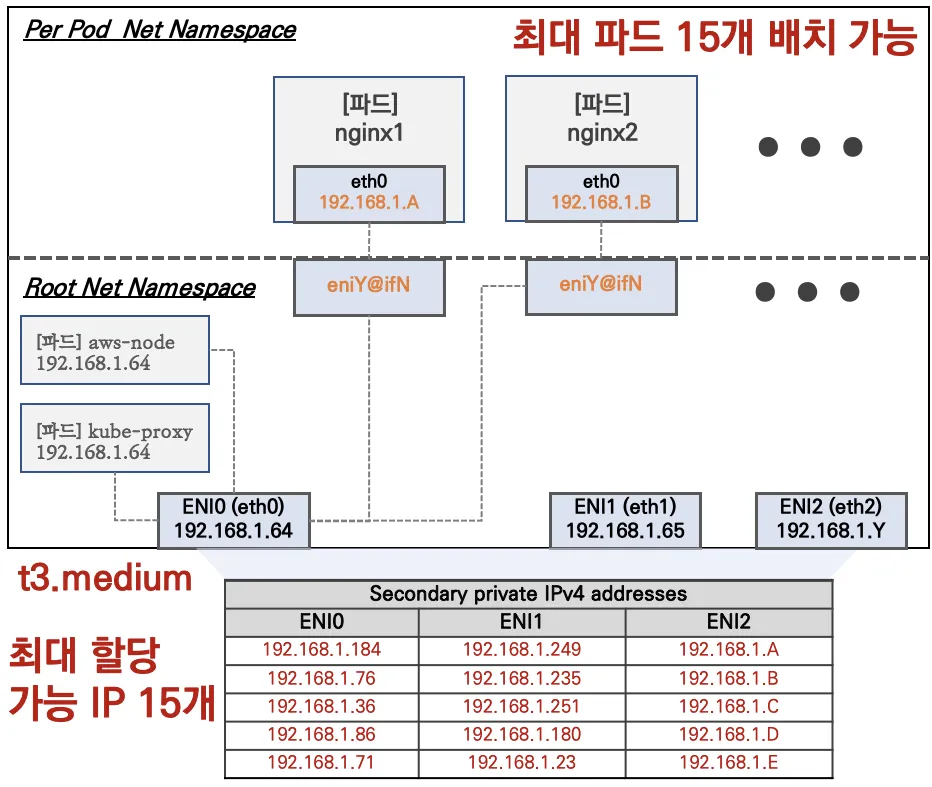 # 참고로 뒤 IP는 eth0(ENI 첫번째)의 IP 주소이다