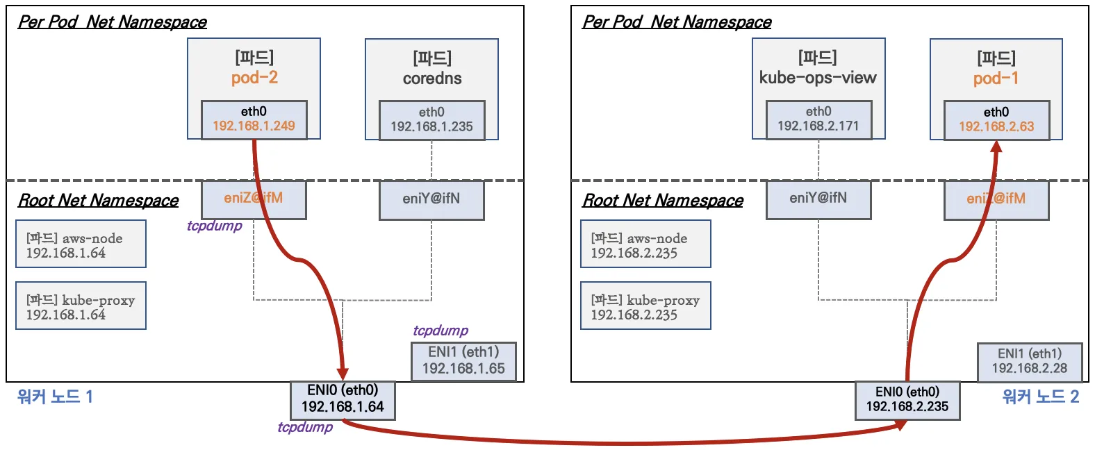 # 워커 노드 EC2 : TCPDUMP 확인