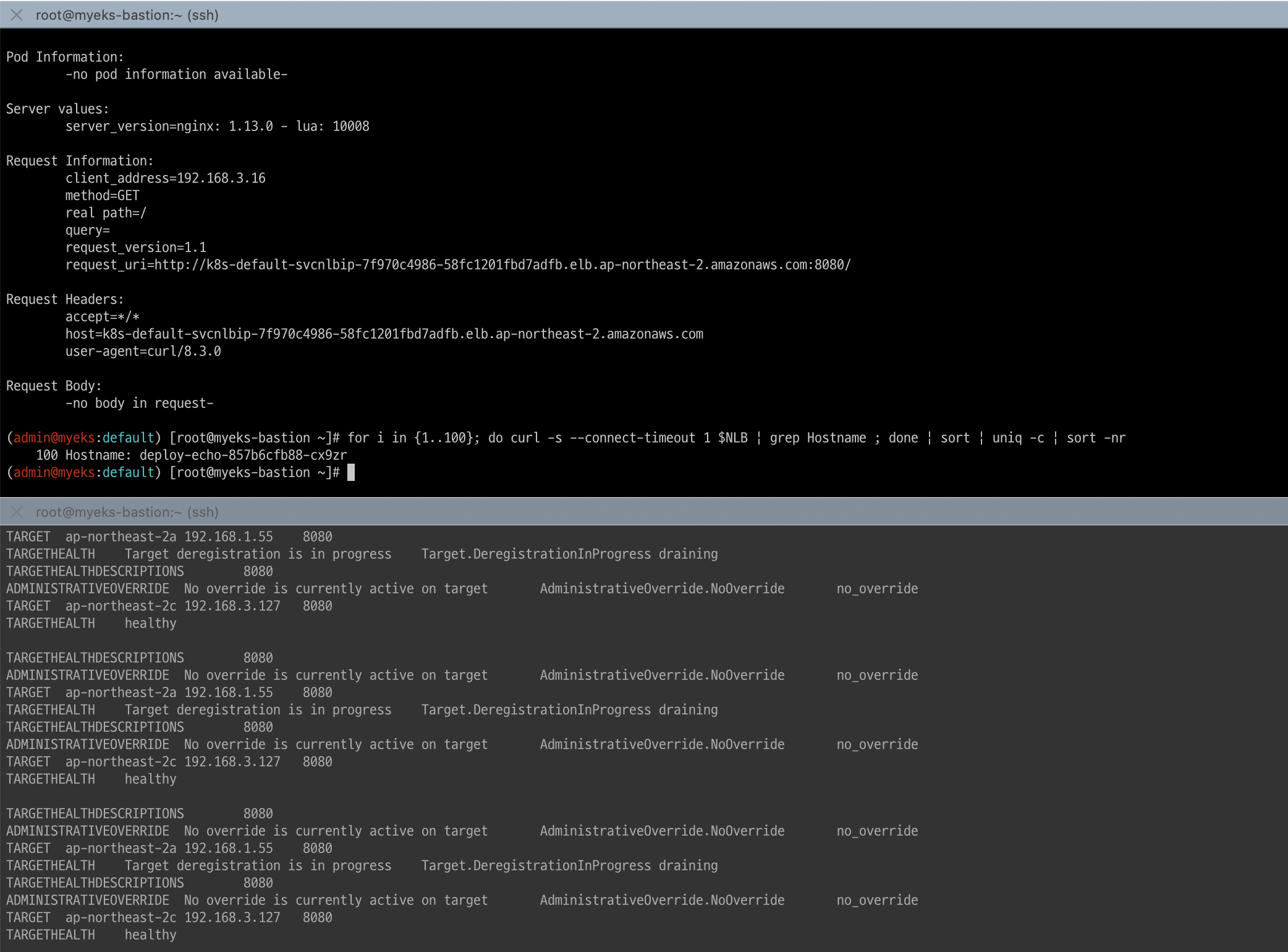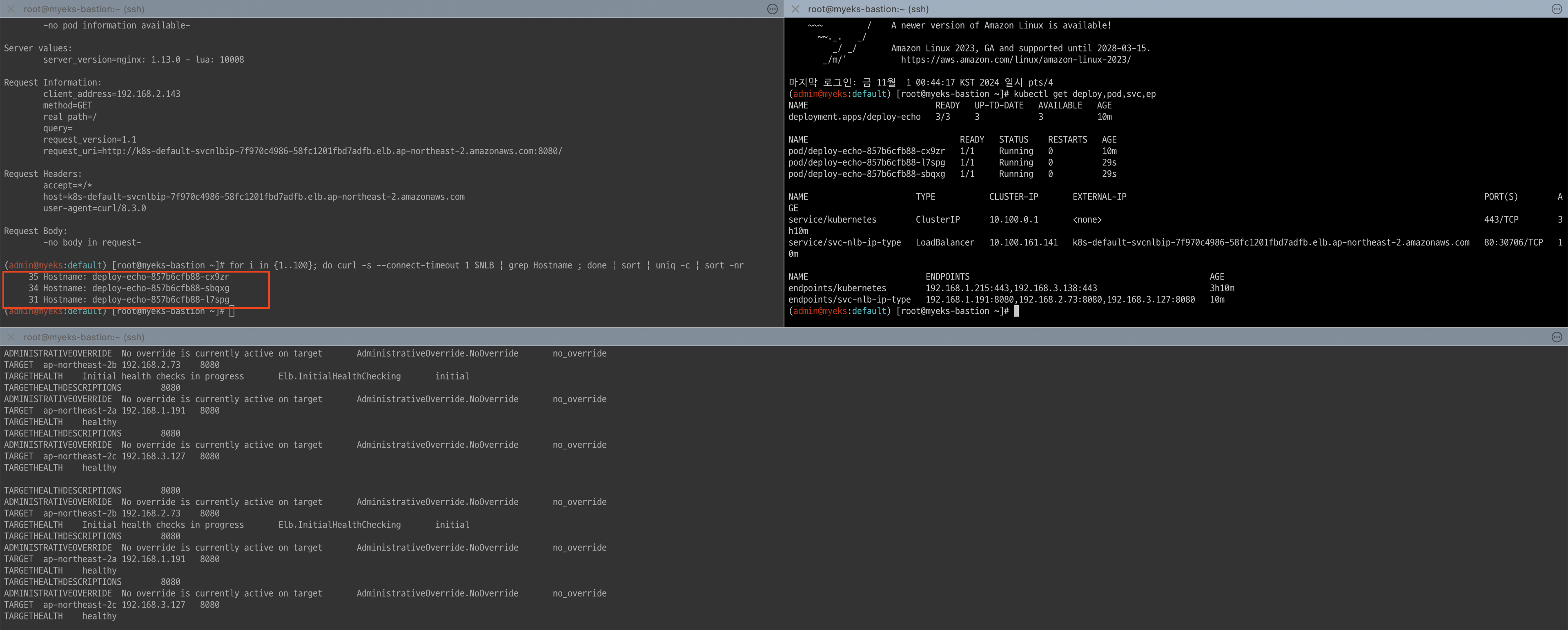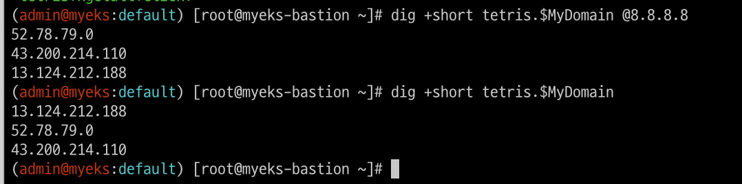 # 작업용 EC2 : pod-1 Shell 에서 외부 접속 확인 - 공인IP는 어떤 주소인가?
