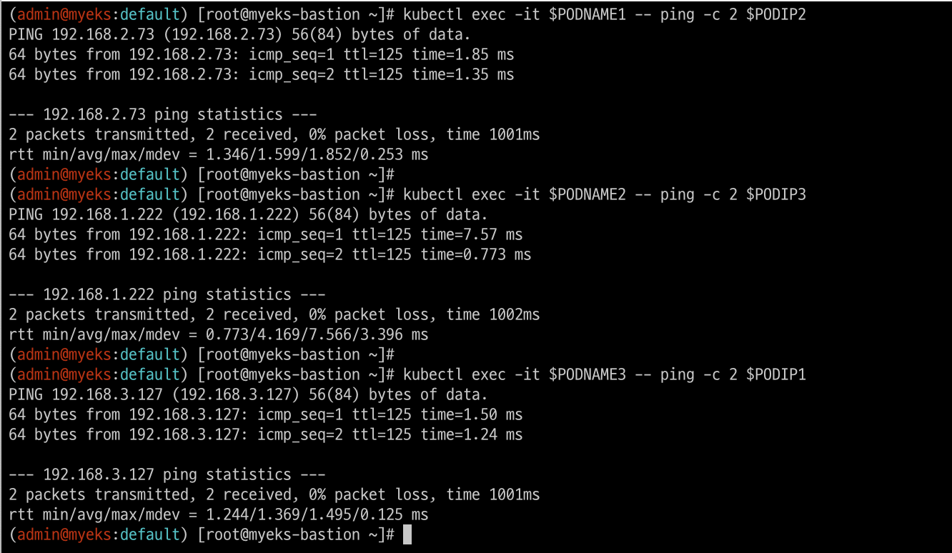 kubectl exec -it $PODNAME2 -- ping -c 2 $PODIP3