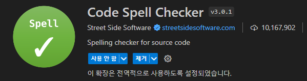 VScode내 확장 프로그램인, code spell checker를 설치