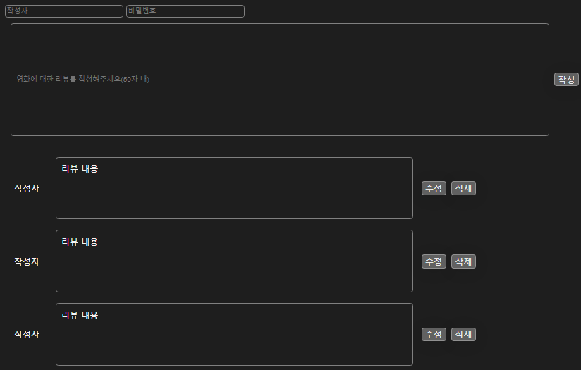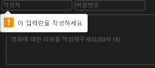 <input type="text" placeholder="영화에 대한 리뷰를 작성해주세요(50자 내)" maxlength='50'>