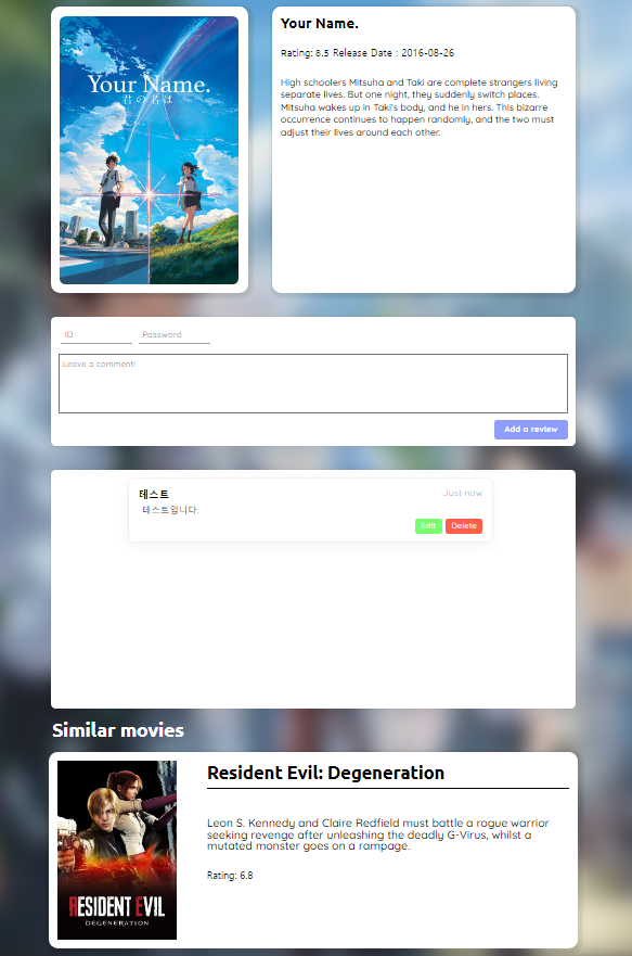 컨셉회의(영화 사이트에 대한 전체적인 UI등)가 먼저 이루어졌으면 조금 더 수월했을 것 같고 팀원들과 조금 더 소통을 못한점이 아쉽다
