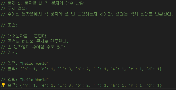 문자열 내 각 문자의 개수 반환