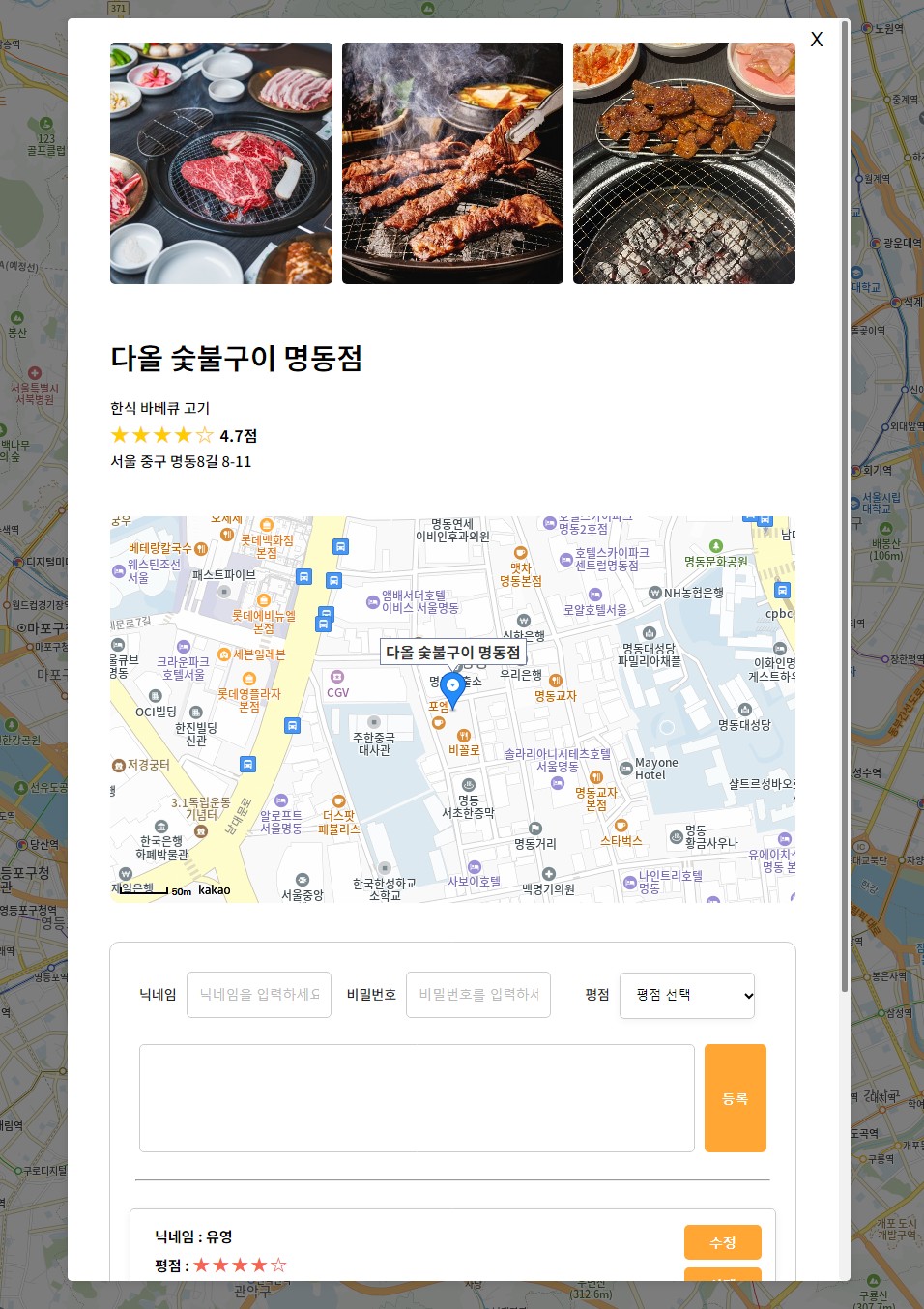 우리가 달린 리뷰를 바탕으로 평점을 계산해서 그려줘야 하는 부분을 내가 담당했다.