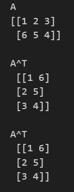 print(f"A^T \n {A.T}\n")