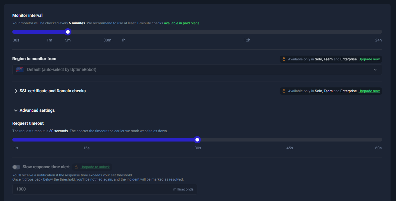 UptimeRobot을 선택한 이유는 다음과 같은 무료 플랜의 장점때문이다.