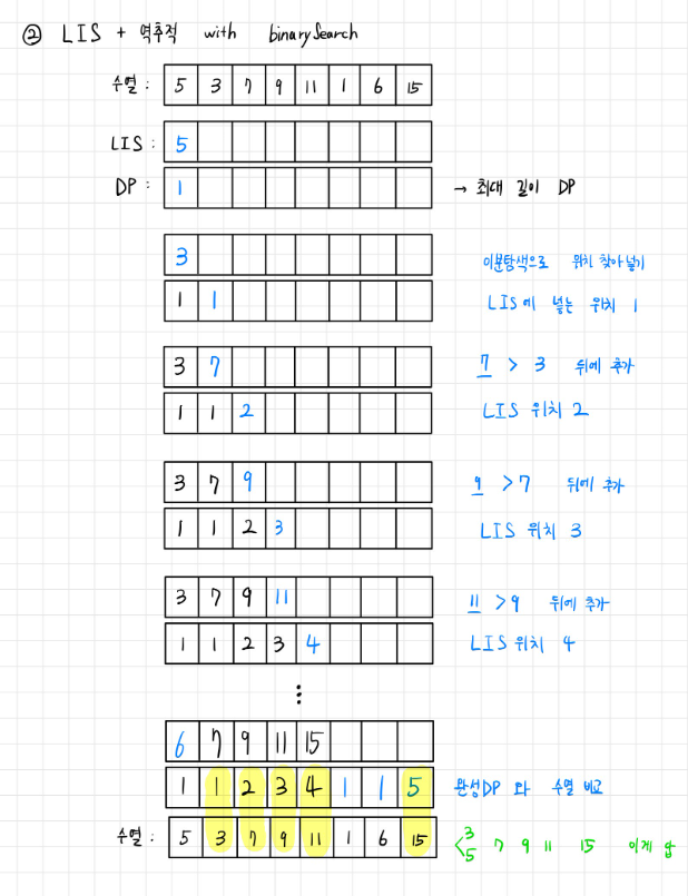 이분 탐색, 가장 긴 증가하는 부분 수열: O(n log n)