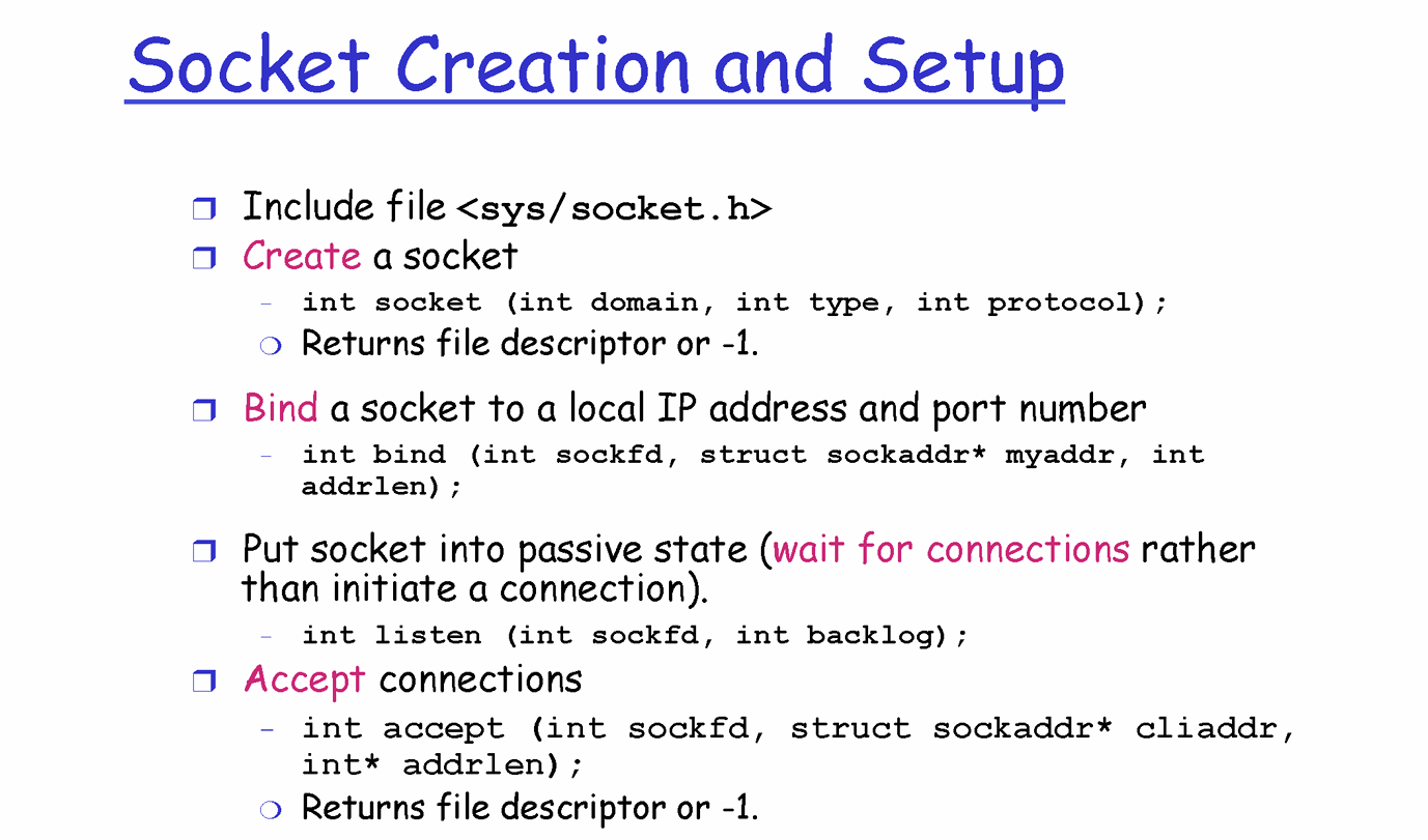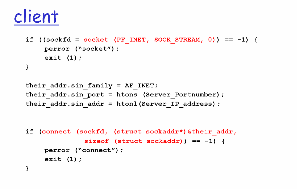 6. socket() and connect() : 클라이언트가 소켓을 열고 원하는 서버의 프로세스에 connect한다. connect는 blocking