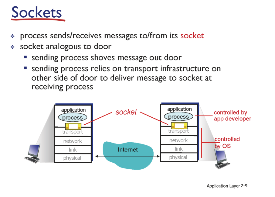 - 어플리케이션 개발자가 Application layer를 컨트롤한다면, 나머지 계층은 OS가 컨트롤한다.