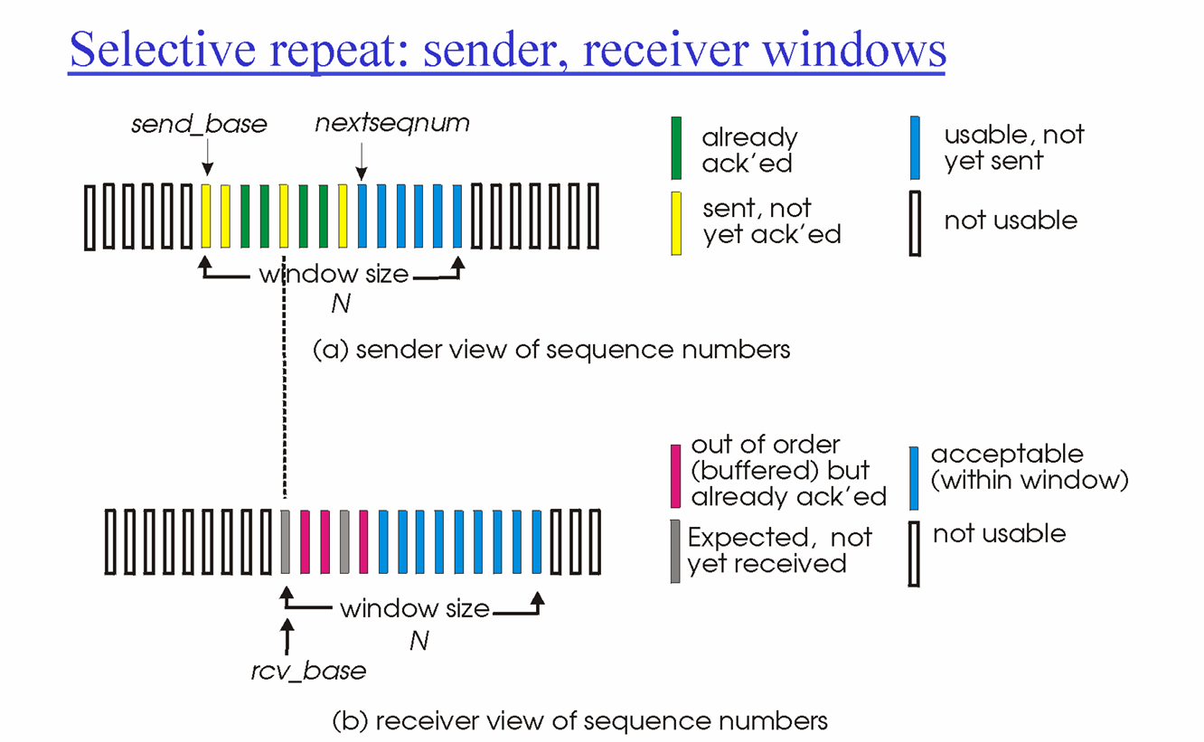 - window안에 있는 패킷들은 버퍼에 저장하고 있어야 한다. 아직 재전송 확률이 있기 때문에 버퍼에 담고있어야한다는 의미.