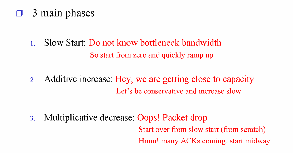 A : 불가능해서 이렇게 하는 것이다. 그 최적의 전송 양도 일정한게 아니라 네트워크 상황이나 라우터 등 여러 조건과 상황에 따라 달라지기 때문에 항상 변동되어야 한다. 최적의 구간을 찾기위해 이 3단계를 무한 반복 해야만 하는 상황.