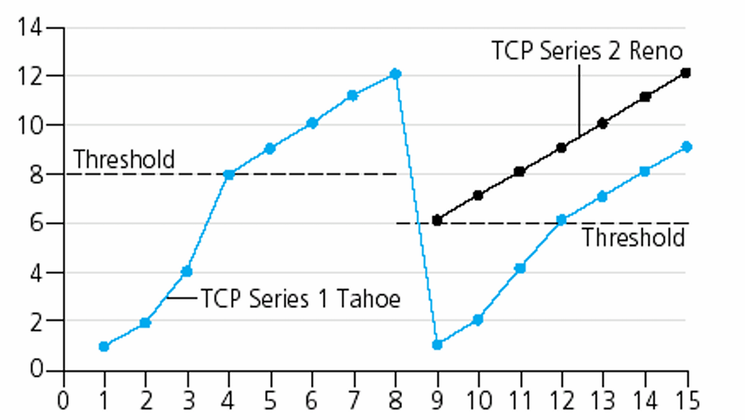 Tahoe에서는 1부터 Slow start를 다시 했었다. 패킷 유실이 탐지되는 경우는 2가지다.