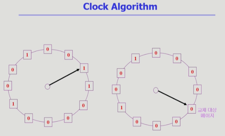 - Clock Algorithm : 시계바늘이 이동하면서 알고리즘이 동작하는 방식이라서 이렇게 부름.