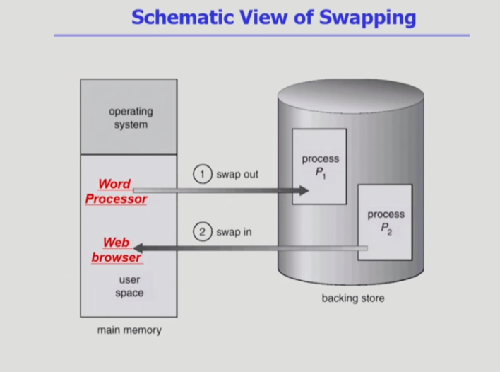 - Compile time 혹은 load time binding에서는 원래 메모리 위치로 swap in 해야 함.