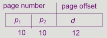 따라서, logical address는 page number (p1 - 10bit, p2 - 10bit)와 page offset (d - 12bit)로 구성되어 있게 된다.