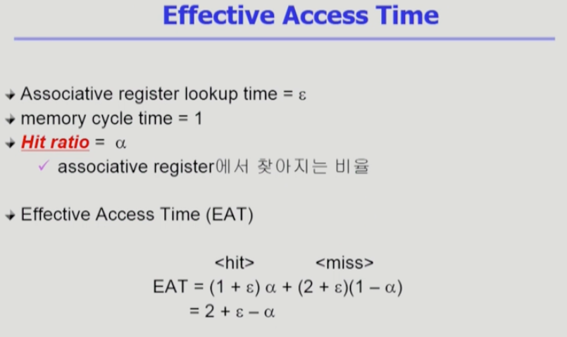 - 만약 해당 page #(number)가 associative register에 있는 경우 곧바로 frame #를 얻음.