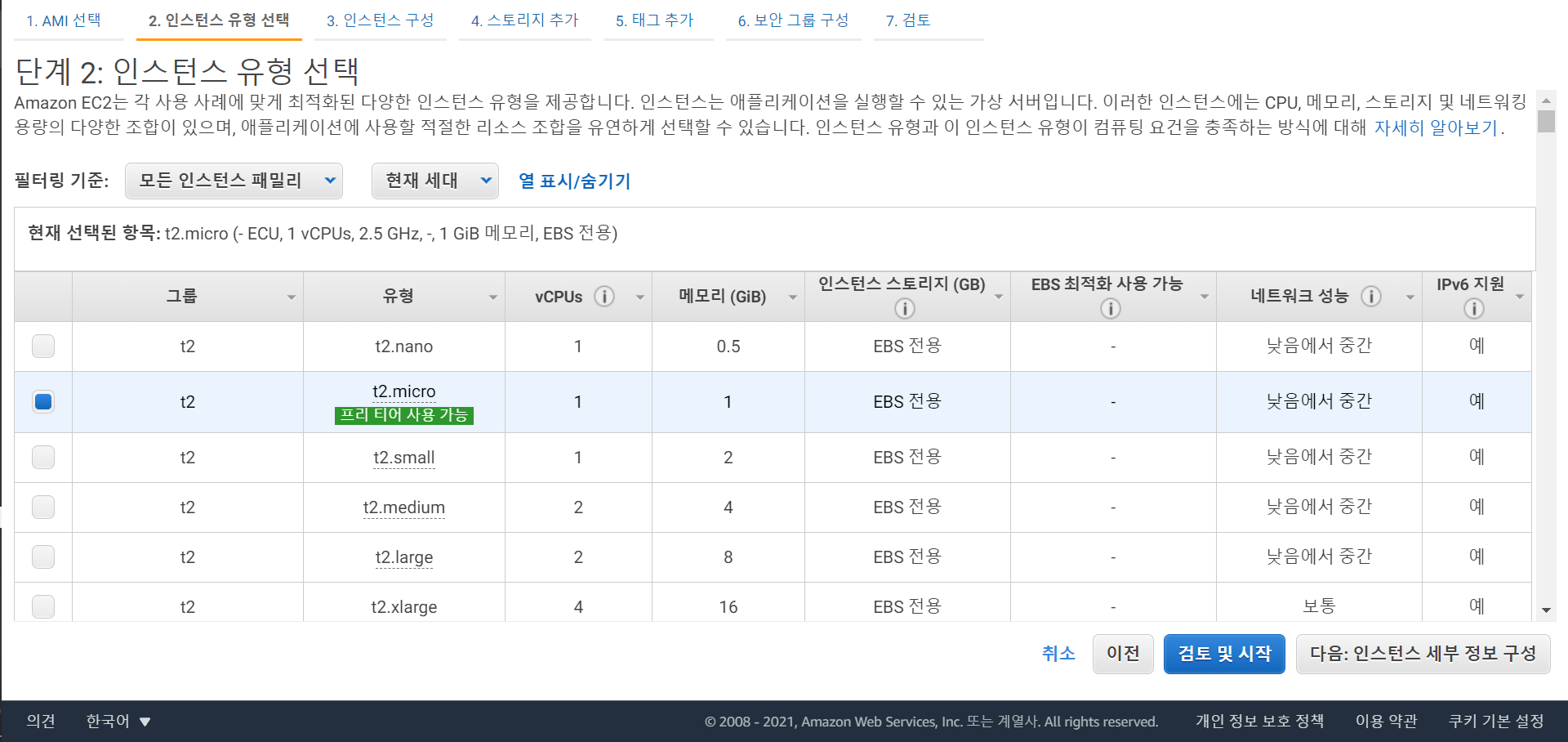 보안 그룹은 기존그룹을 선택한 후에 나중에 수정해주면 된다