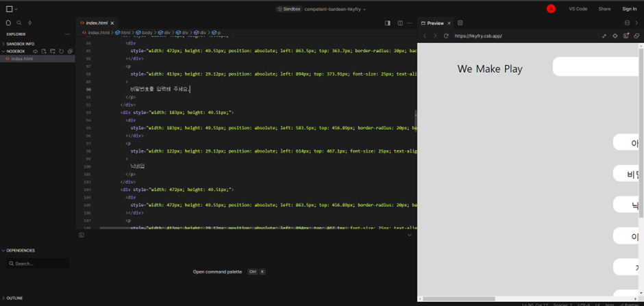 다음은 Open in browser를 눌렀을 때 나오는 화면인데, 여기 있는 index.html 의 내용을 긁어와서 테스트 해보면 출력이 제대로 나온다.