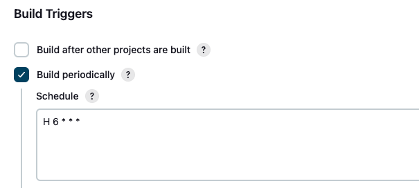 여기에 빌드 트리거를 설정해서 매일 지정한 시간(새벽 6시)에 정적분석을 동작하도록 했다.