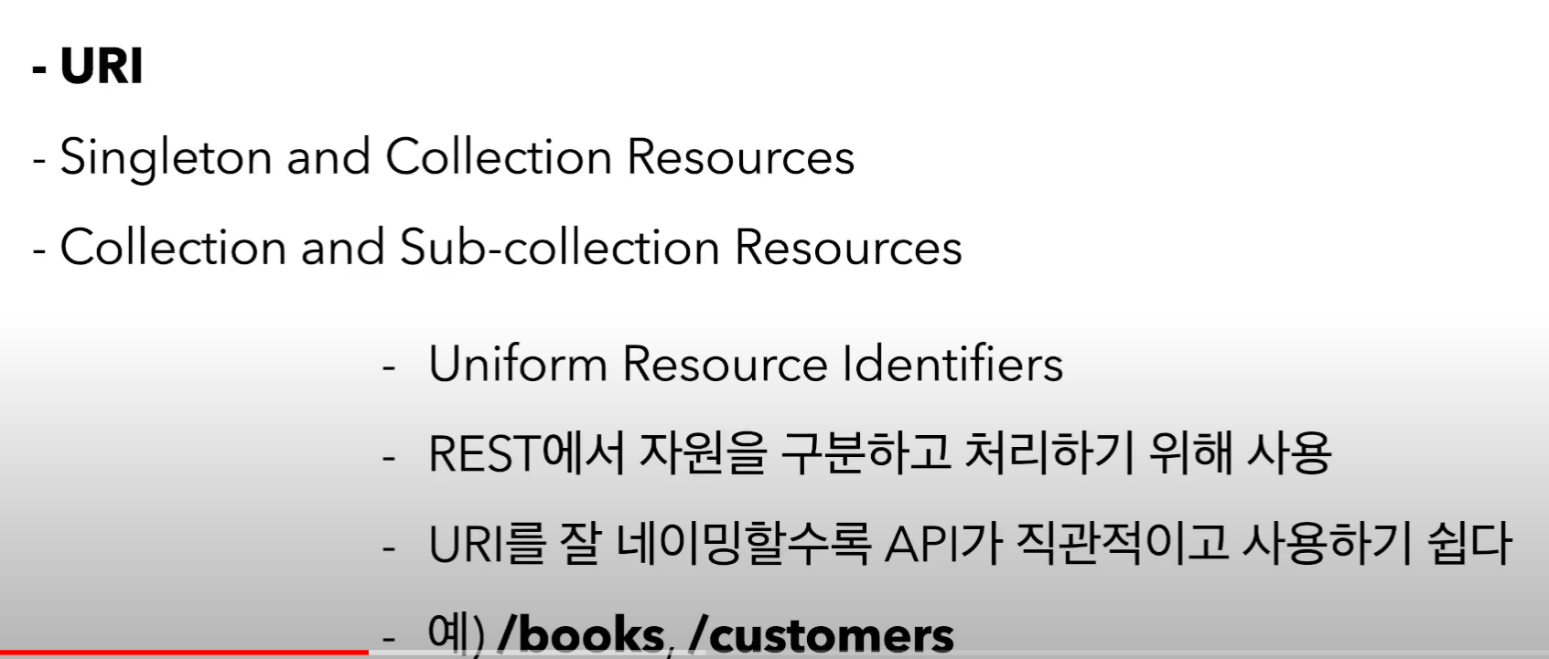클라이언트와 서버 사이의 상호작용에서 고유하게 자원을 식별할 수 있어야 한다는 제약조건
