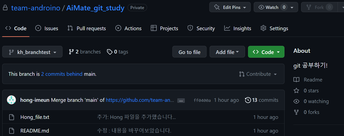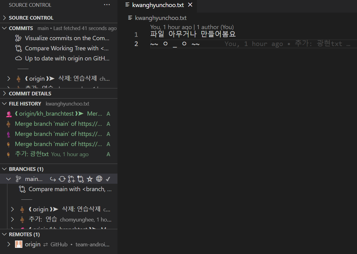 txt파일 생성 후 pull, push, fetch, commit 해보기