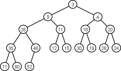 A heap is a complete binary tree in which the value of a node is less than all the values in its subtrees. By convention, the smallest element is the one with the highest priority.