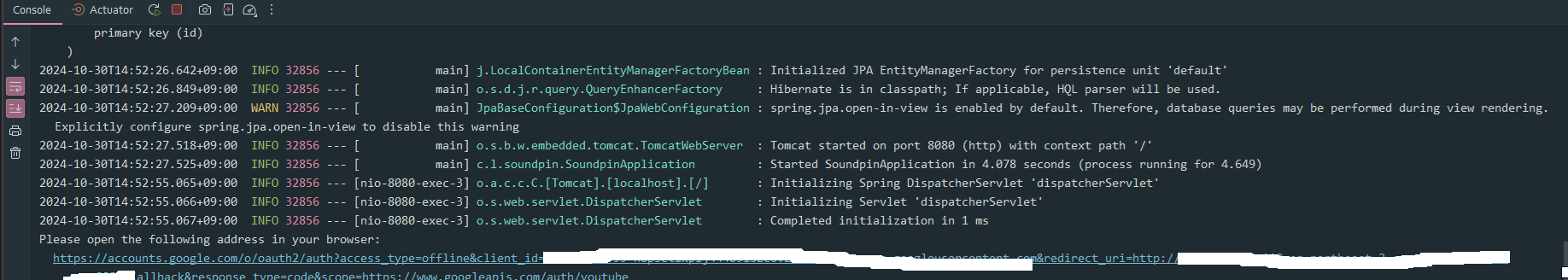 해당 코드가 진행되면 google 로그인을 진행하는 창의 url이 출력이 된다.