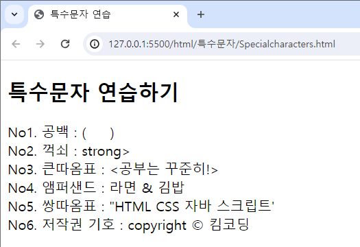 HTML 문서에서 공백, <>, "", '등은 특수하게 처리되어야 하는데