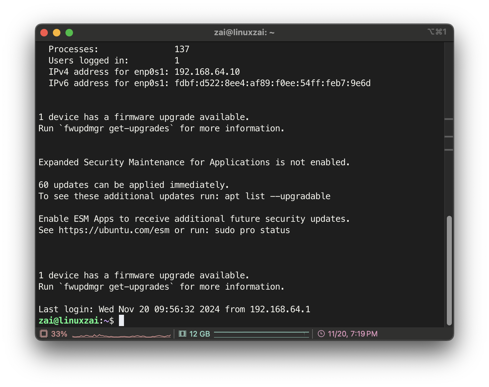 이 글에선 Mac 터미널(iTerm)에서 SSH를 통해 설치한 Ubuntu(Linux)에 원격으로 접속하는 방법을 기록한다.
