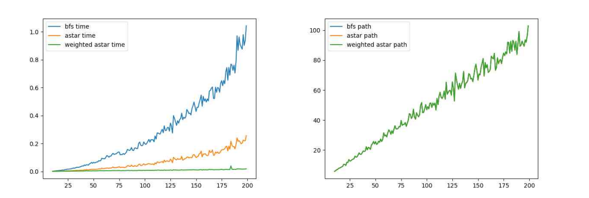 return [bfs_performance,astar_performance,weighted_astar_performance],[len(bfs_path),len(astar_path),len(weighted_astar_path)]